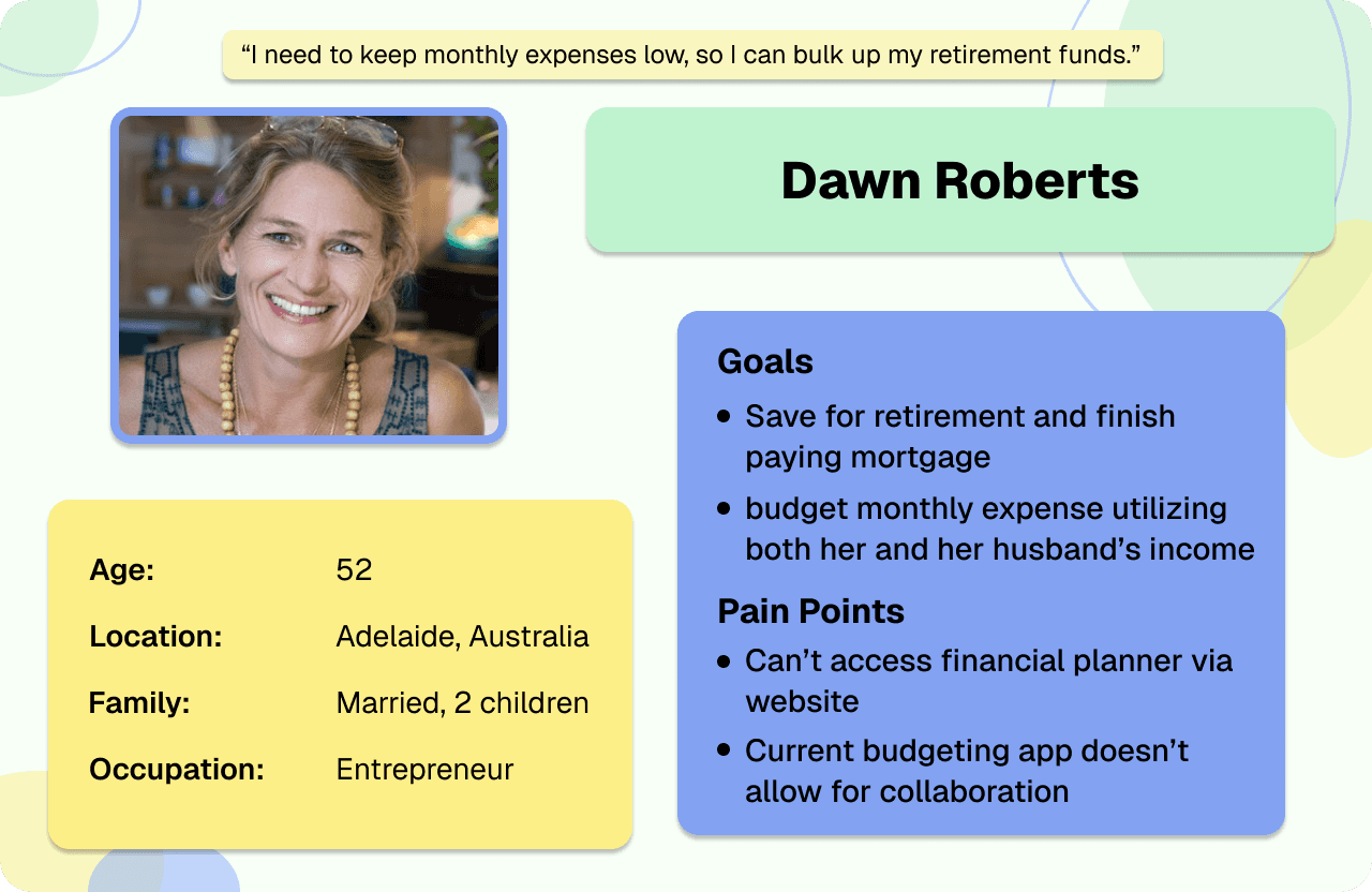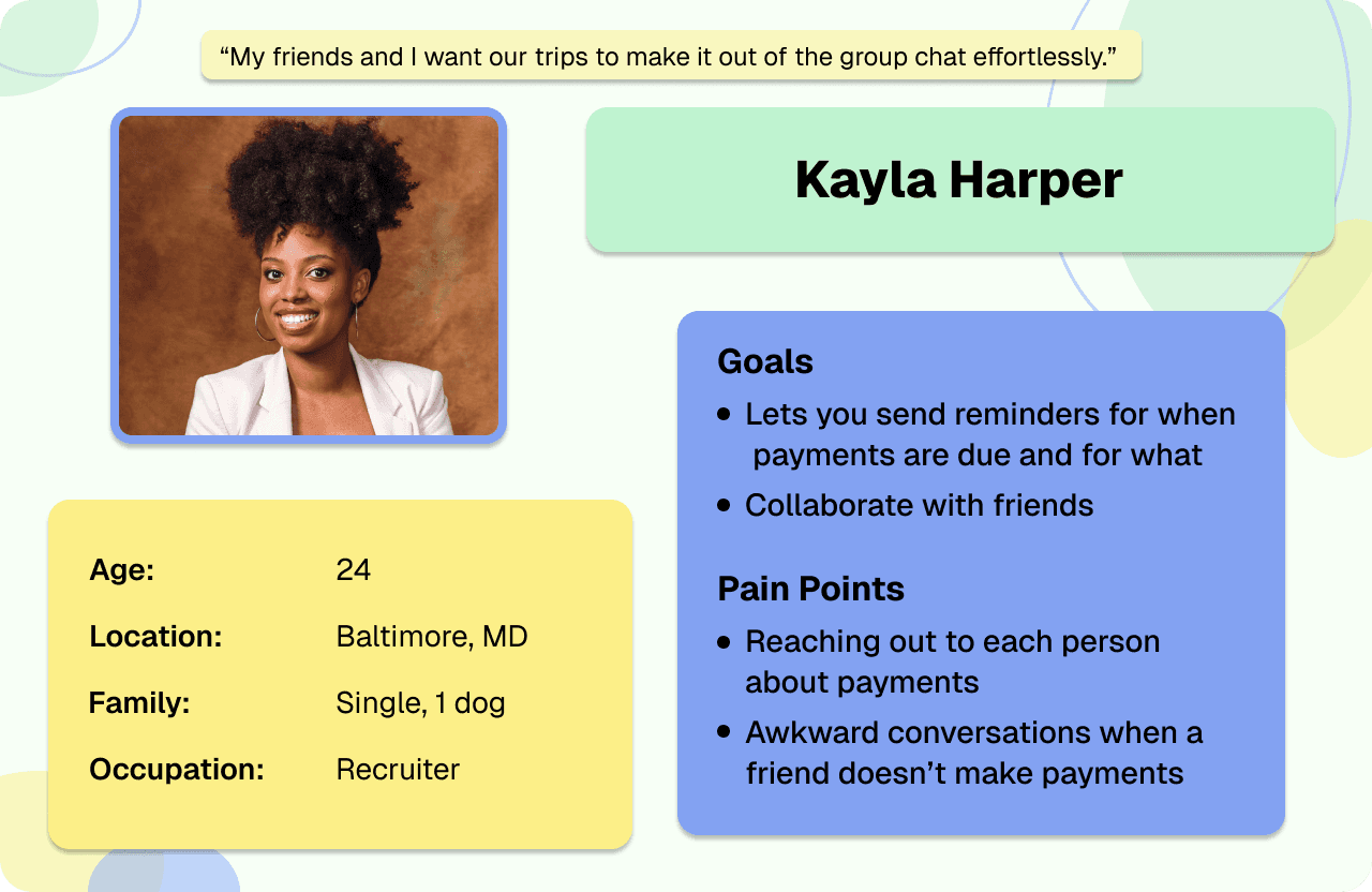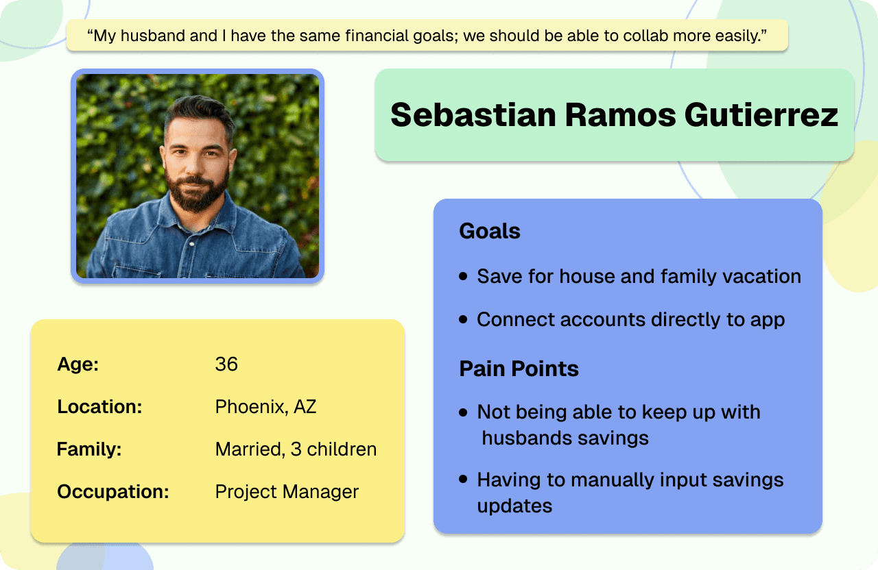 I interviewed seven people that fit my target user to understand common challenges people face when trying to reach financial goals that involve other people.